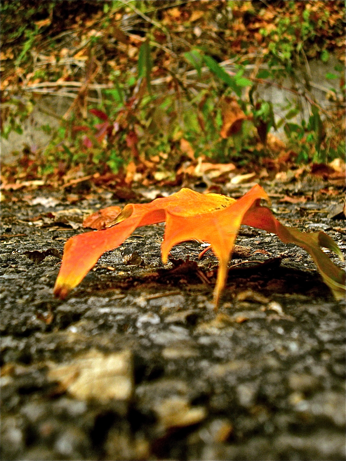 The last three photos you just saw....You can only imagine how sore and dirty I was after taking them. And those are only three out of forty-four photos I took of leaves on the ground! Just saying.